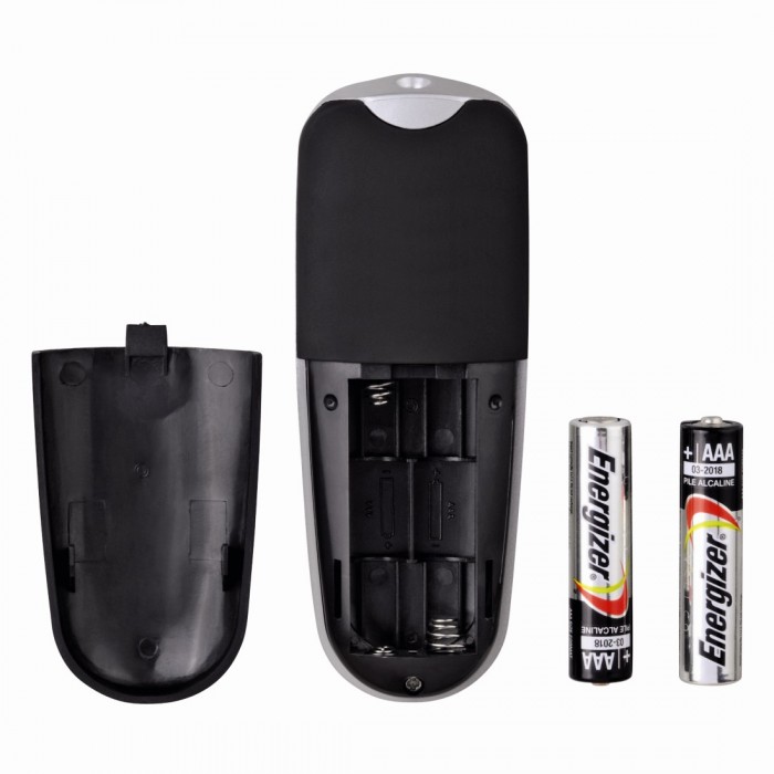 المميزات مدمج به مؤشر ليزر مثالى للتأكيد والتركيزعلى النقاط الهامة فى محيط مظلم. يد ذات سطح من المطاط لتحسين التحكم به و الراحة. ريموت لاسلكى يعمل على تردد 2.4 جيجاهرتز مدمج به مؤشر ليزر أحمر للتحكم الإحترافى والدعم أثناء العروض التقديمية من خلال البروجيكتور. مزود بإمكانية التمرير فى مايكروسوفت بور بوينت وتطبيقات الأوفيس الأخرى. تدعم التكنولوجيا الذكية لسهولة بدء التشغيل. يحتوى على مستقبل إشارة يو إس بى بالغ الصغر Nano USB.