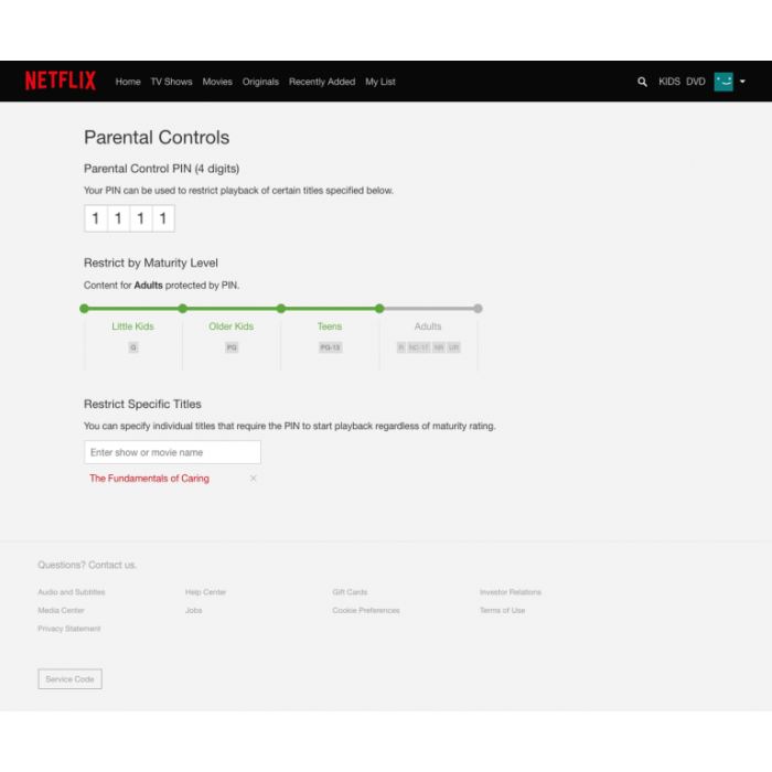 في الوقت الحالي يمكن للوالدين وضع رمز PIN لقفل محتوى عند تصنيف معين ولكن بدءاً من اليوم سيتمكن الوالدين من وضع رمز القفل PIN على محتوى محدد فمثلاً انا شاهدت مسلسل Narcos ووجدت انه غير مناسب لأطفالي بإمكاني منع أطفالي من مشاهدة هذا المسلسل بواسطة رمز القفل الخاص بي وهذا سيجعلني اشعر براحة واطمئنان أكبر.