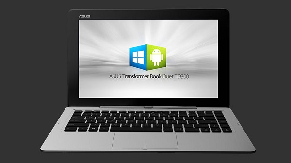 ويتميز الحاسب اللوحي Transformer Book Duet بأنه يدعم العمل بنظامي تشغيل وفي وضعي الحاسب اللوحي والحاسب المحمول، حيث يضم زرا يسهل على المستخدم التحويل بسهولة بين نظامي التشغيل.