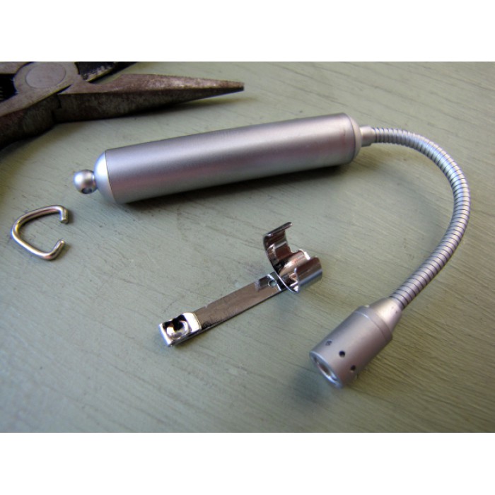 Feature | 2.7 lumen output. 5 hour runtime. 2 inch body, 2.7 inch flex neck. High intensity LED; white beam. Metal casing. |